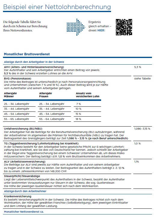 Die folgende Tabelle führt Sie durch ein Schema zur Berechnung Ihres Nettoverdienstes.